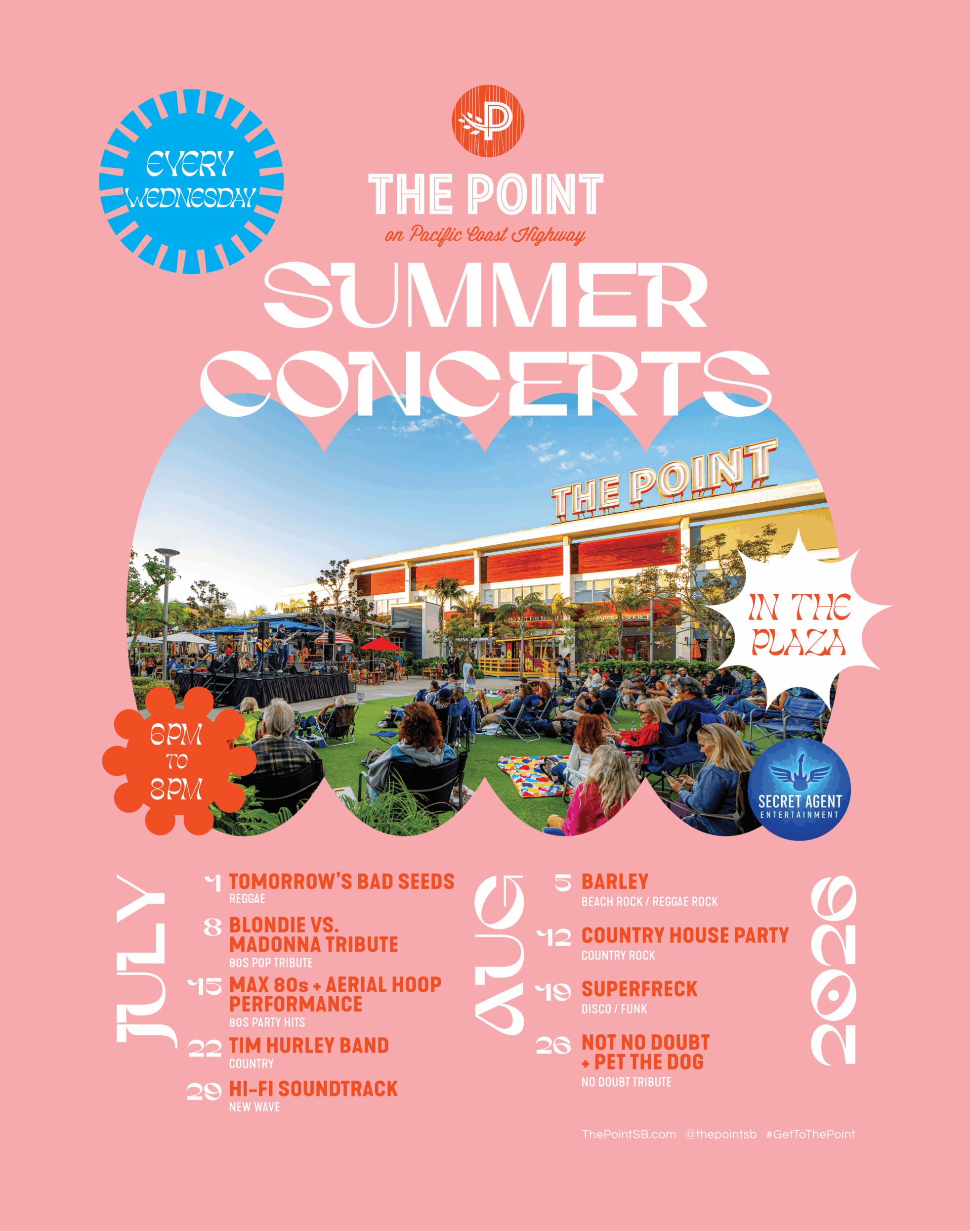 Bring your chair and a blanket and enjoy live music on the lawn in The Plaza at The Point! Free concerts happening every Wednesday in July and August from 6pm to 8pm.